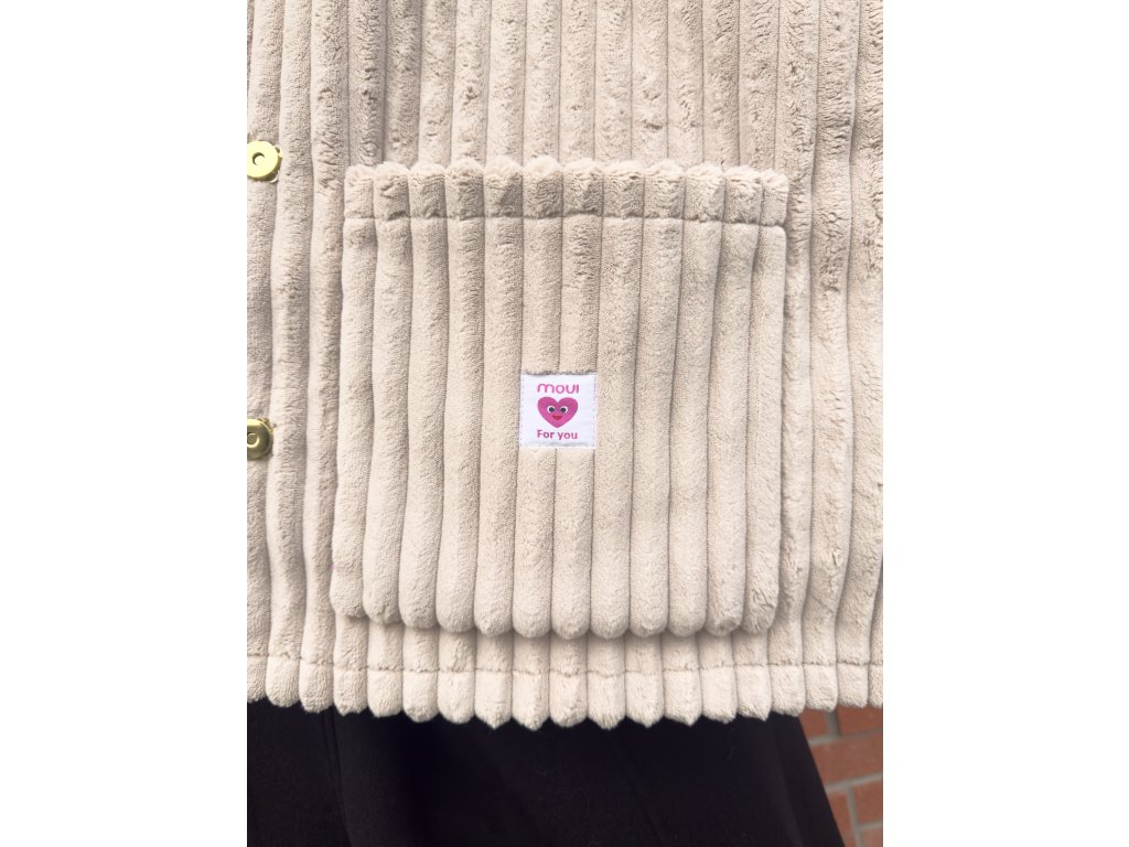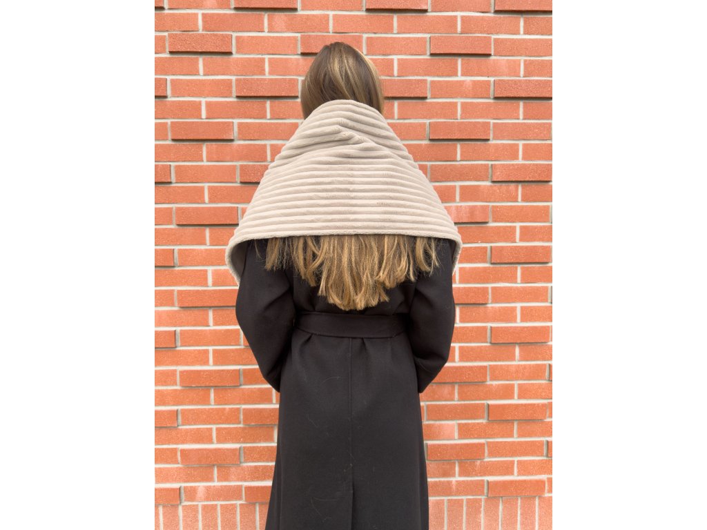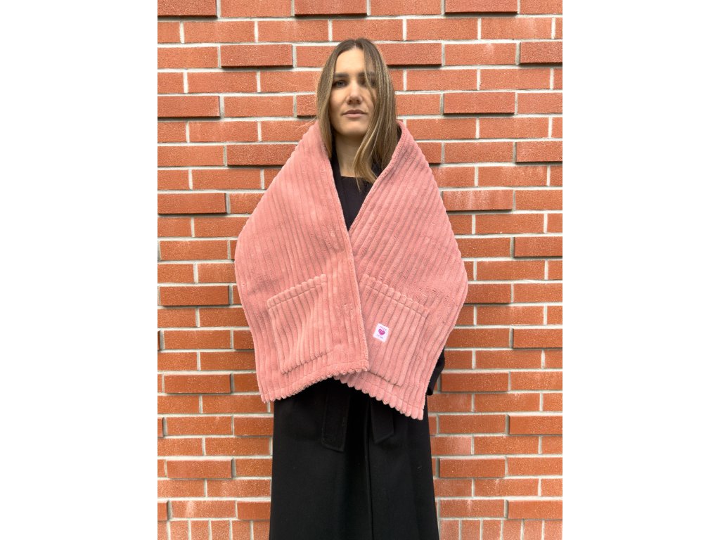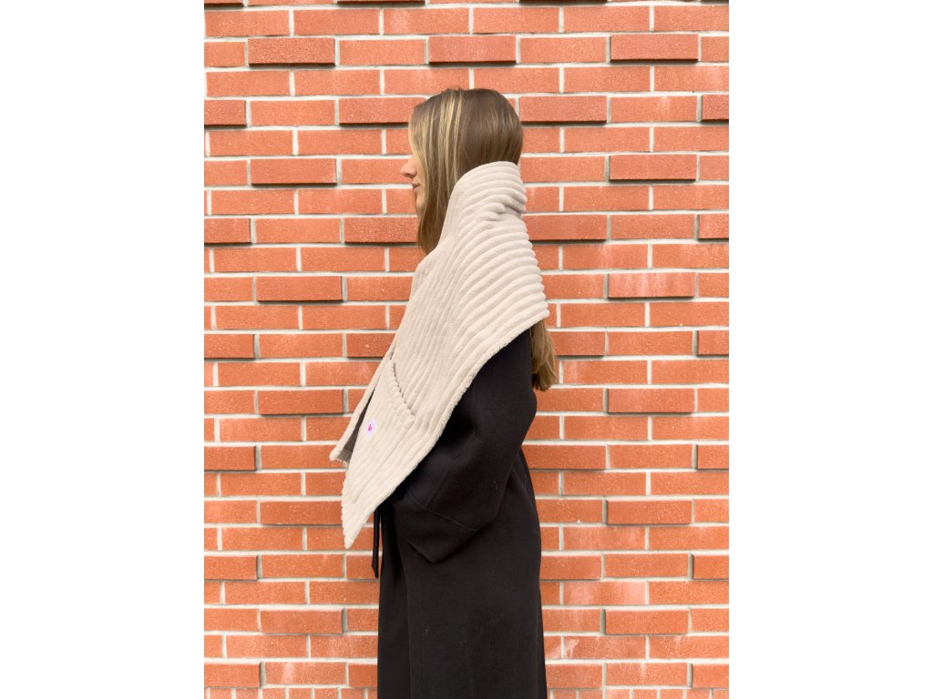Plyšový menčestrový šál, ktorý si jednoducho prehodíš cez seba a zapneš dvomi praktickými patentkami. Mäkký plyšový materiál vytvára pri šití jemné, hravé oblúčiky, ktoré dodávajú šálu šmrnc a textúru. Teplý, štýlový a ideálny na chladnejšie dni – kombinácia pohodlia a elegantného vzhľadu v jednom doplnku.