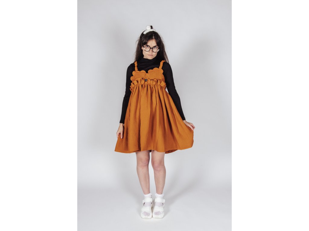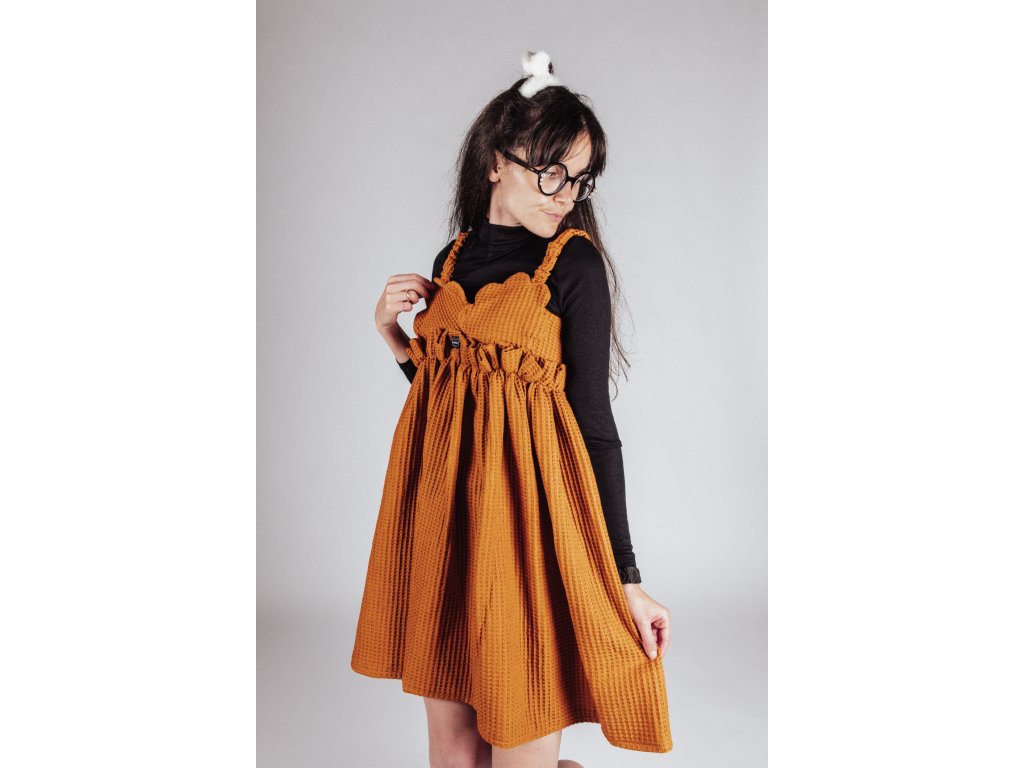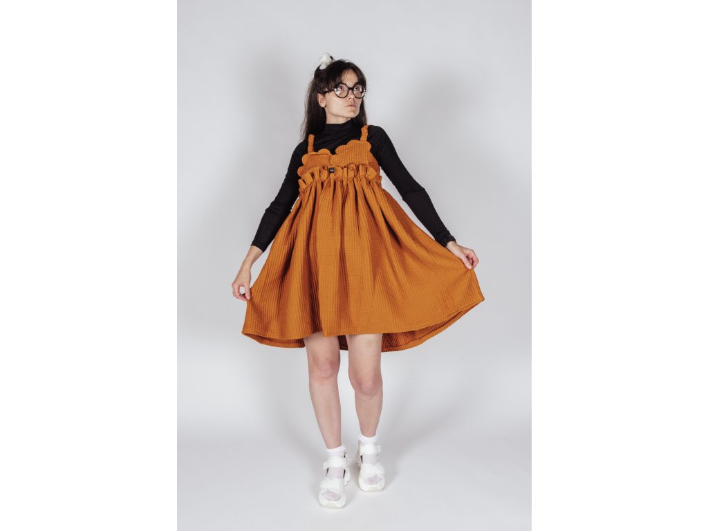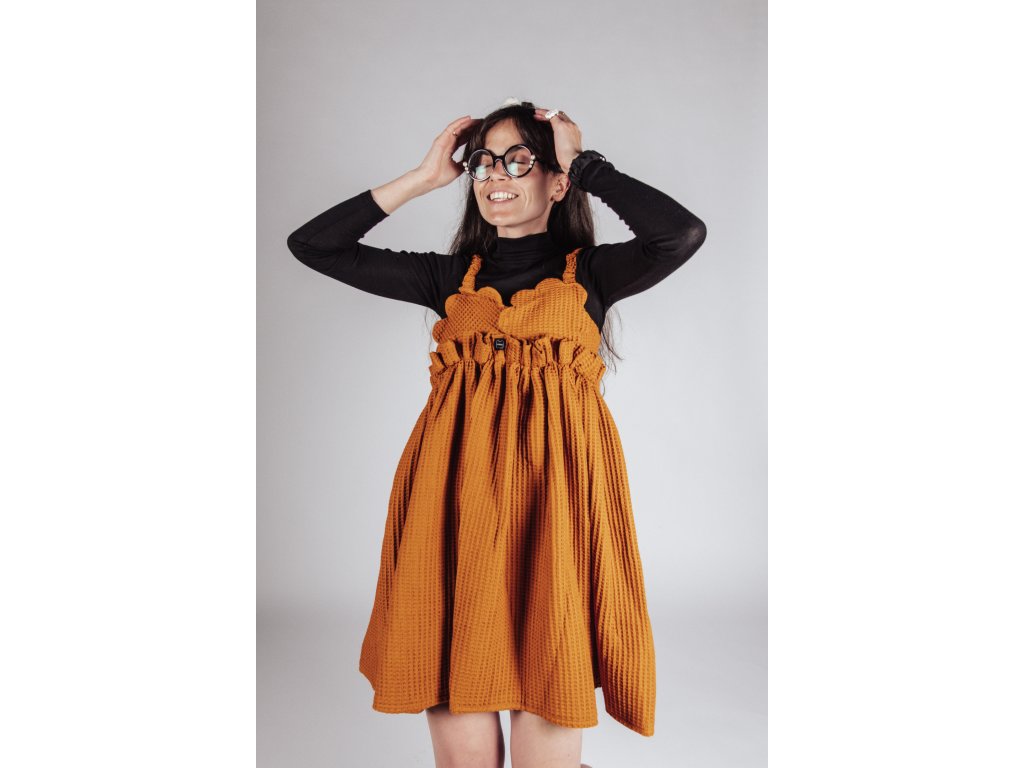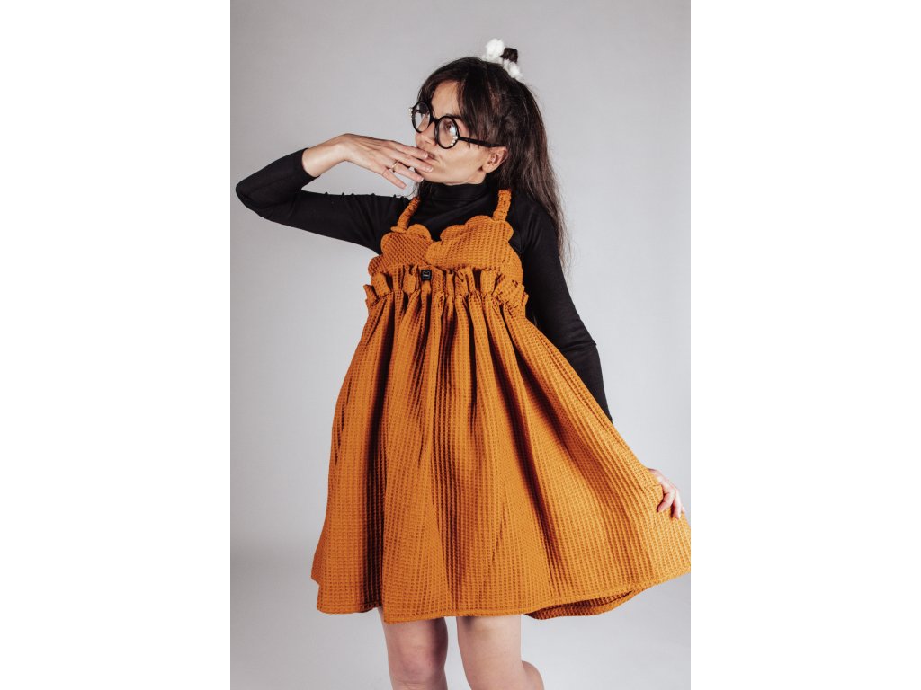 TIETO RUČNE VYRÁBANÉ ŠATY AUTORSKÉHO DIZAJNU, Z WAFFLE LÁTKY, SPOJUJÚ NADČASOVÝ MATERIÁL S NEOBVYKLÝM DETAILOM A ĽAHKOSŤOU LETNÉHO STRIHU.