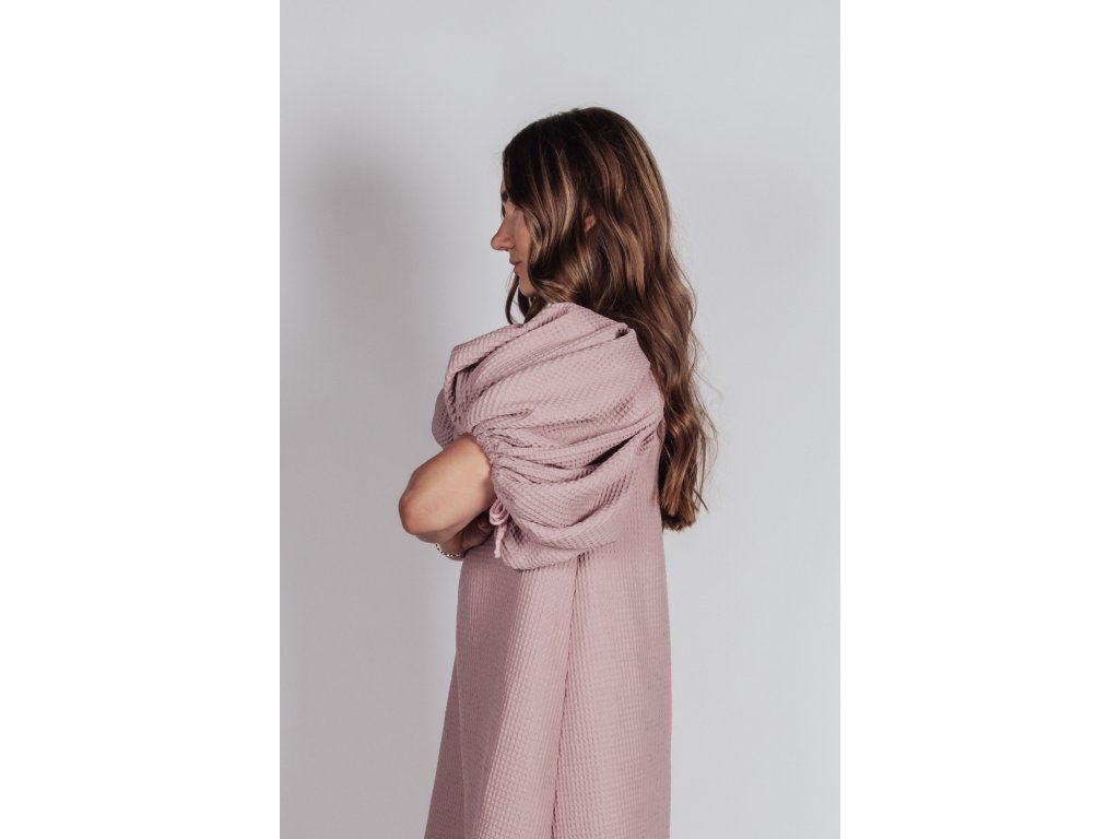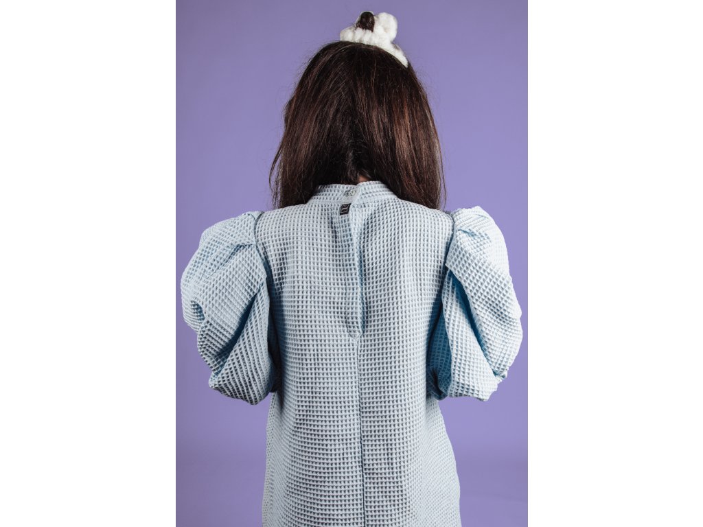 TIETO RUČNE VYRÁBANÉ ŠATY AUTORSKÉHO DIZAJNU, Z WAFFLE LÁTKY SÚ JEDINEČNÝM SPOJENÍM NETRADIČNÉHO STRIHU A MÄKKEJ ŠTRUKTÚRY MATERIÁLU.