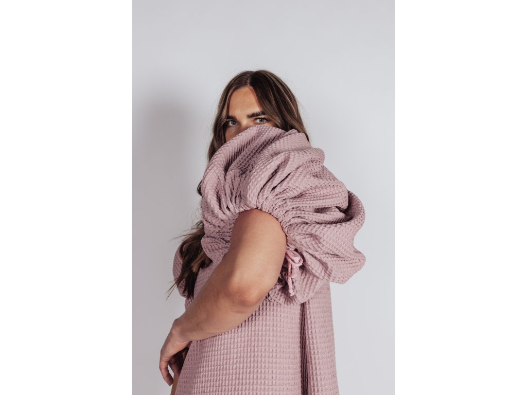 MATERIÁL: 100 % BAVLNA – WAFFLE LÁTKA S JEMNOU ŠTRUKTÚROU, KTORÁ JE PRÍJEMNÁ NA DOTYK, PRIEDUŠNÁ A PRIRODZENE DRŽÍ TVAR.